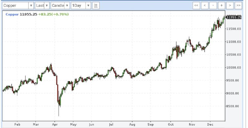 На Шанхайской бирже котировки достигли 11 966,5 за тонну. Параллельно растут цены на алюминий, цинк и никель.